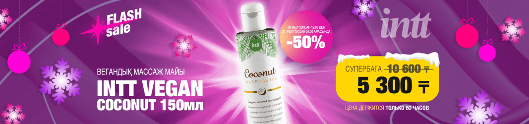 19-дан 21 желтоқсанға дейін премиум өнімге — Intt Vegan Coconut 150 мл веган массаж майына 50% жеңілдік.