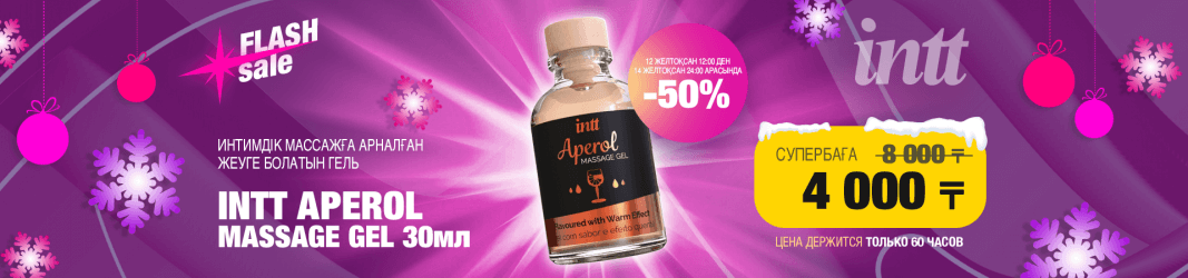 Керемет нәрсені сынап көрудің және жаңа жылды құмарлықпен және талғаммен бастаудың тамаша уақыты! 30 мл интимдік массажға арналған жеуге болатын гельге 50% жеңілдік intt Aperol massage коктейль хош иісті гель аперол барлық дүкендерде 1214 желтоқсан аралығында 3 күн ғана жарамды extaz.kz Алматы, Астана және Шымкент қалаларында және онлайн тапсырыс беру кезінде!