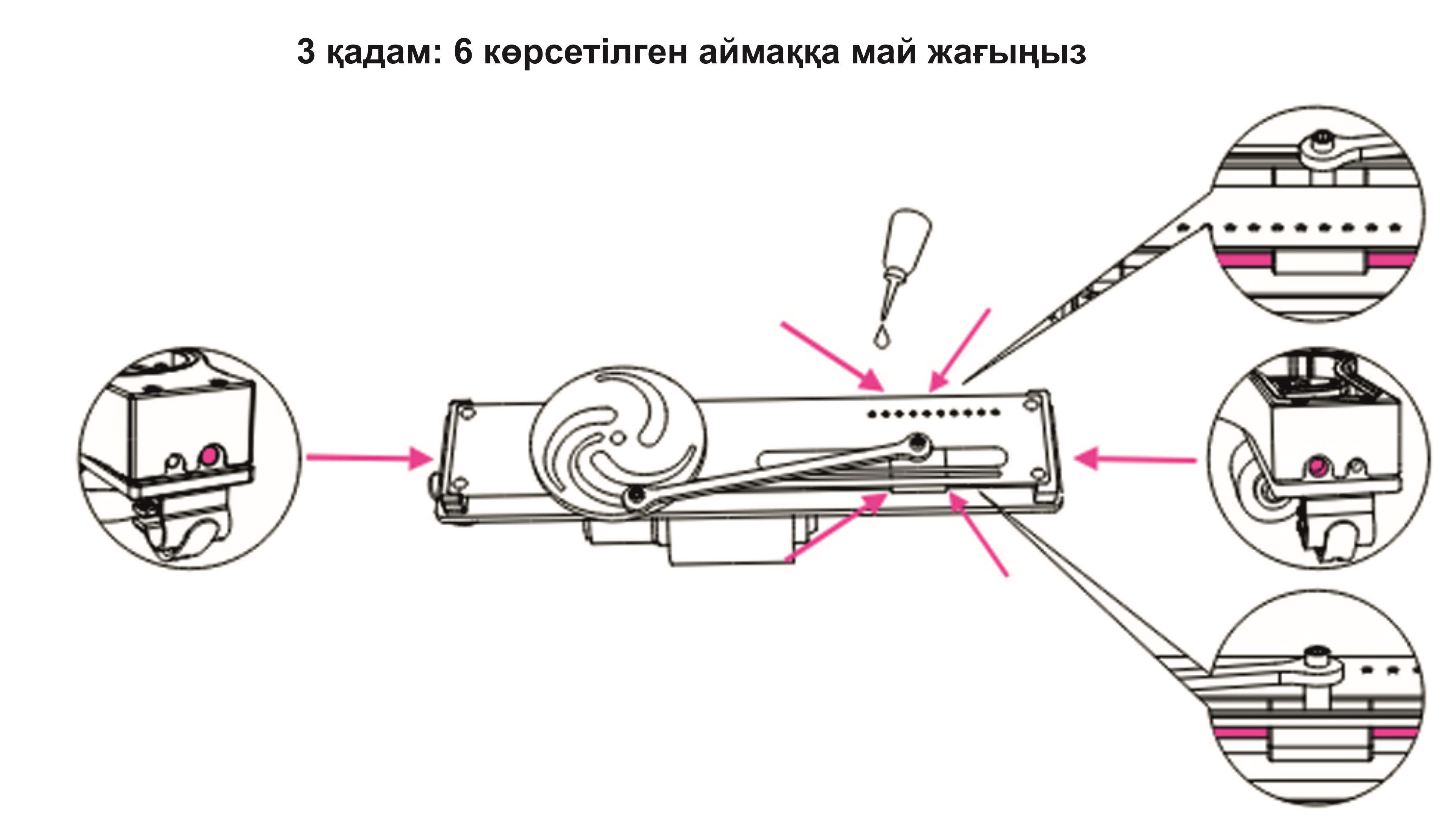 Бағыттаушы рельстерді және шток орнатылатын тесіктерді әр 2–3 ай сайын (немесе қозғалыс бірқалыпты болмай қалса) механикалық маймен майлау ұсынылады. Жоғары температураға төзімді кез-келген мойынтірек майы жарайды.