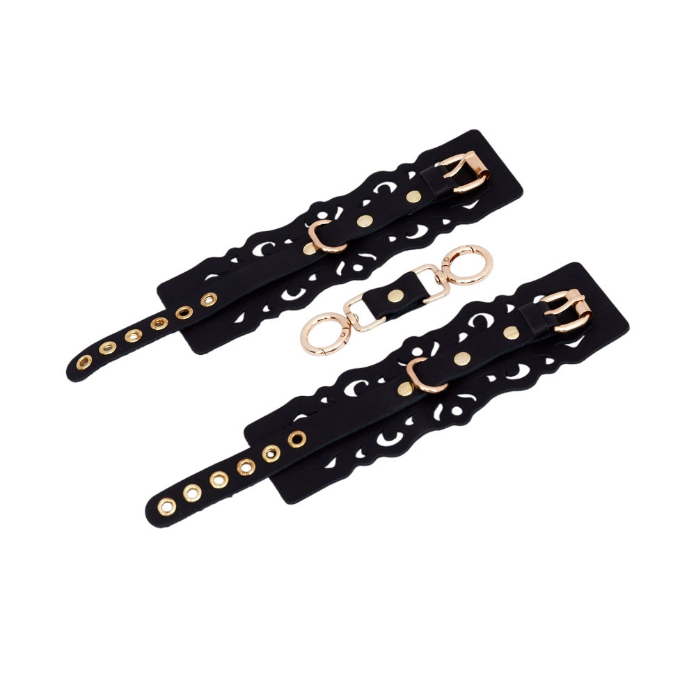 Өрнектері мен алтын арматурасы бар қара былғарыдан жасалған кісендер