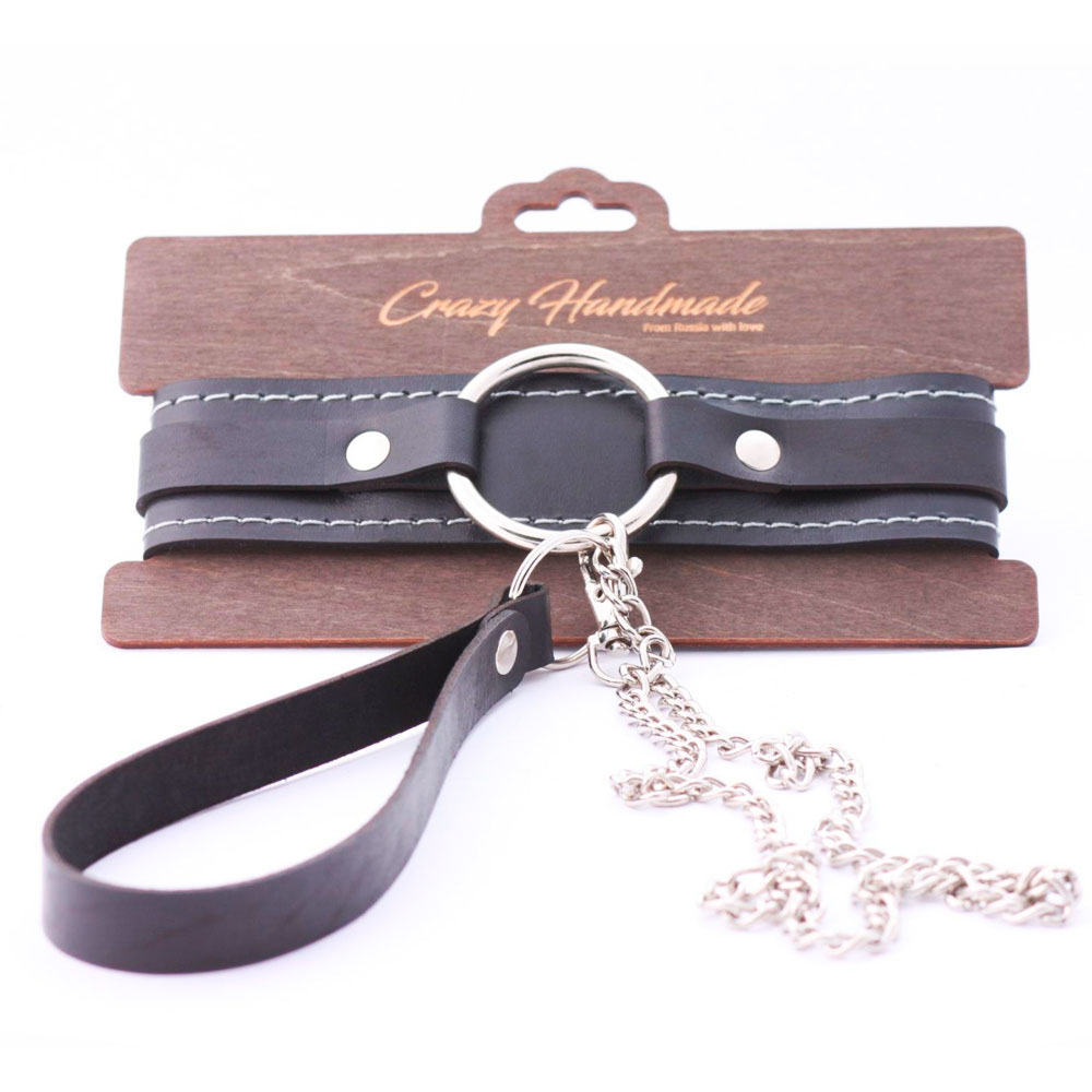 Crazy Handmade премиум шокері екі қабатты былғарыдан жасалған және төселген: ұқыпты ақ тігіс, анатомиялық сәйкестік және сенімді жабдық. Сыртқы жағында хромдалған болат сақина бар; берік тізбегі, карабині және былғары ілмегі бар қарғыбау бар. Аксессуар экспрессивті безендіру ретінде де, кескіннің функционалды элементі ретінде де жұмыс істейді. Параметрлер: шеңбер 34-44 см, ені 4 см, қарғыбаудың ұзындығы 84 см.
