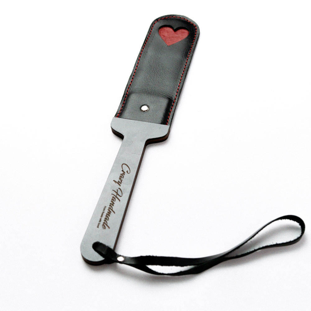 Шынайы былғарыдан жасалған икемді соққы палубасы және сәндік қызыл жүрегі бар Crazy Handmade Premium paddle; контрастты тігіс өнімділіктің дәлдігін көрсетеді. Қолтаңба логотипі бар қара ағаш тұтқасы қолыңызда ыңғайлы, білек ілмегі бақылауды қосады. Аксессуар экспрессивті және функционалды — ұқыпты эксперименттер мен ойластырылған жиынтықтар үшін. Параметрлер: Жалпы ұзындығы 39 см, соққы бөлігі 21 см, ені 7 см.