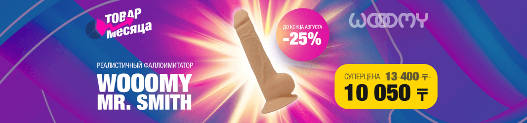 1-31 тамыз аралығында Extaz.kz-тің барлық дүкендерінде немесе интернет арқылы тапсырыс беру кезінде ұзындығы 17,5 см, ені 3,5 см болатын WOOOMY ұсынған Mr. Smith шынайы фаллоимитаторына 25% жеңілдікті қолдана аласыз.