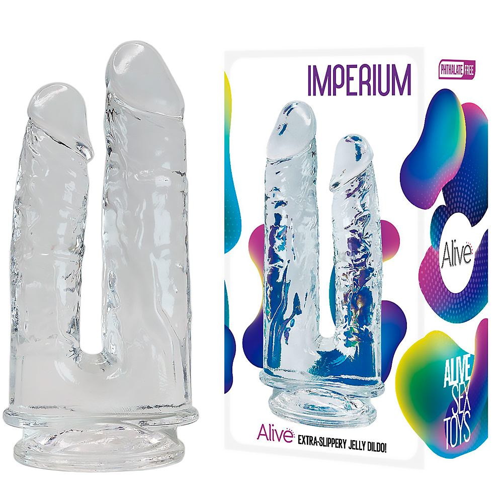 Испандық alive секс-ойыншық брендінің Imperium фаллоимитаторымен бірге ең батыл қиялдарыңызды іске асырыңыз, бұл сізге қанағаттанудың ең биік нүктесіне көтерілуге қабілетті қосарланып ену мүмкіндігін береді! Фаллоимитатор мөлдір түсте термопластикалық эластомерден жасалған. Бірден екі бірдей веноздық рельефі бар және айқын басы бар қоздырғыш сіздің анальды және вагиналды тесіктеріңізді бірдей толтырып, денеңіз ешқашан сезбеген сезімдерге ие боласыз. Түссіз екі басты дилдо 100% гипоаллергенді және фталатсыз Jelly TPE материалынан жасалған. Толығымен су өткізбейді, бұл құрылғы сіздің интимді сапарларыңыз үшін тамаша серіктес болады. Қуатты жабысатын табан кез-келген тегіс бетке еш кедергісіз жабысып сізге екі бірдей  мүшені қолдануға мүмкіндік береді.
