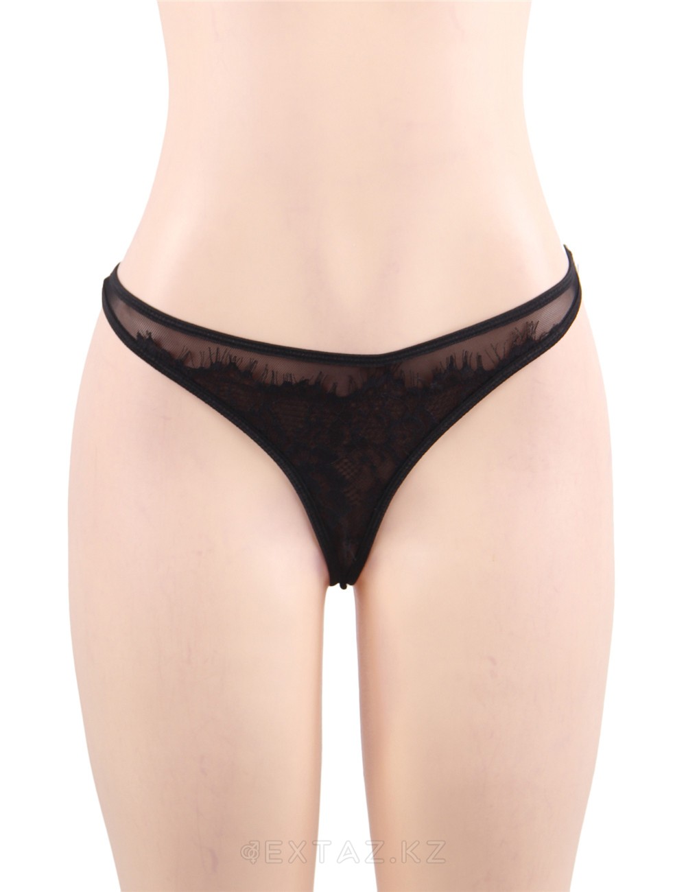 Трусики-бикини спереди декорированы гипюром.