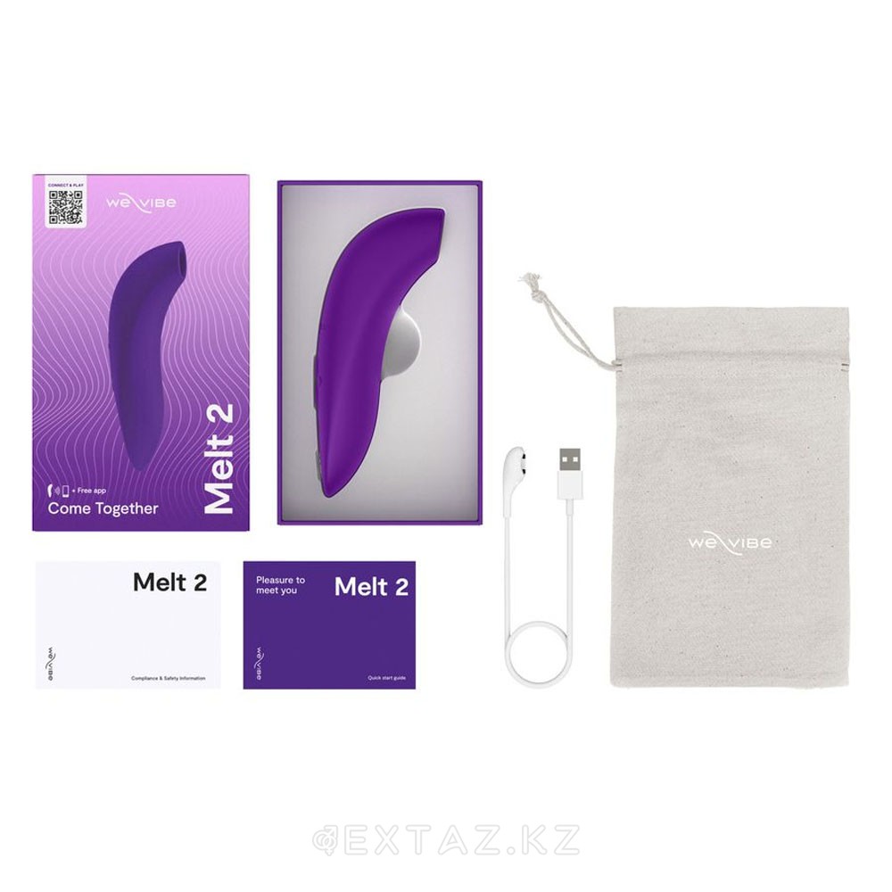 Жинаққа кіреді We-Vibe Melt 2, USB-кабель для зарядки, мешочек для хранения, инструкция