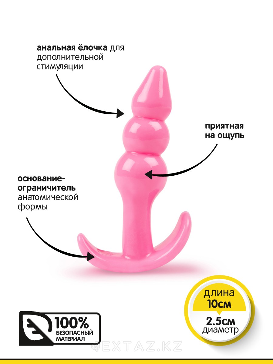 Браззерс - анальная пробка с шариками, 10х2.5 см. Розовый