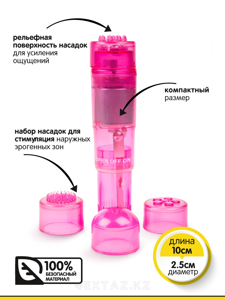 Браззерс- мини-вибратор с насадками, 10х2.5 см. Розовый
