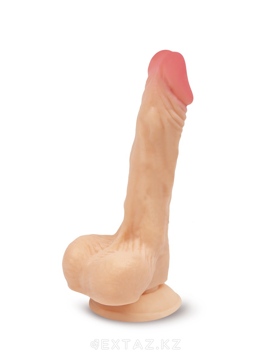 У игрушки небольшая длина и средний диаметр, на стволе есть рельефные венки, а сверху у неё маленькая скошенная розовая головка. Также у фаллоимитатора довольно реалистичные мошонка,уздечка и складочки - это понравится всем поклонникам и поклонницам натуральных форм.