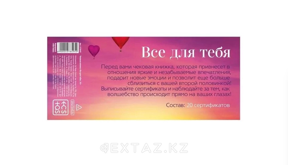 Екі адамға арналған "Бәрі сен үшін" чек кітапшасы, 18+