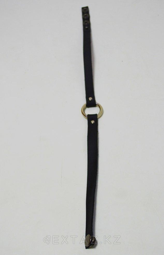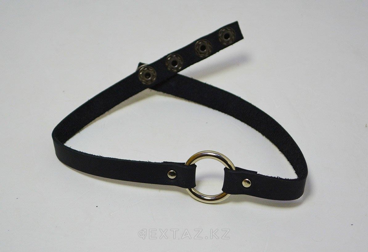 Чокер черный, кожаный с кольцом