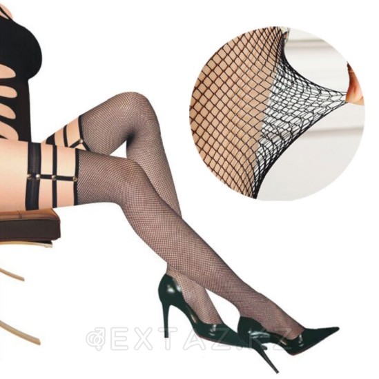 Представленные чулки весьма необычны по формату, с имитацией ремешков. Смотрится весьма дерзко! Прекрасно подйдут комплекту с портупеей. Уверены, что вы сразите наповал своим видом! А если подобрать пеньюар или комплект секси белья, то эффект просто непредсказуем!