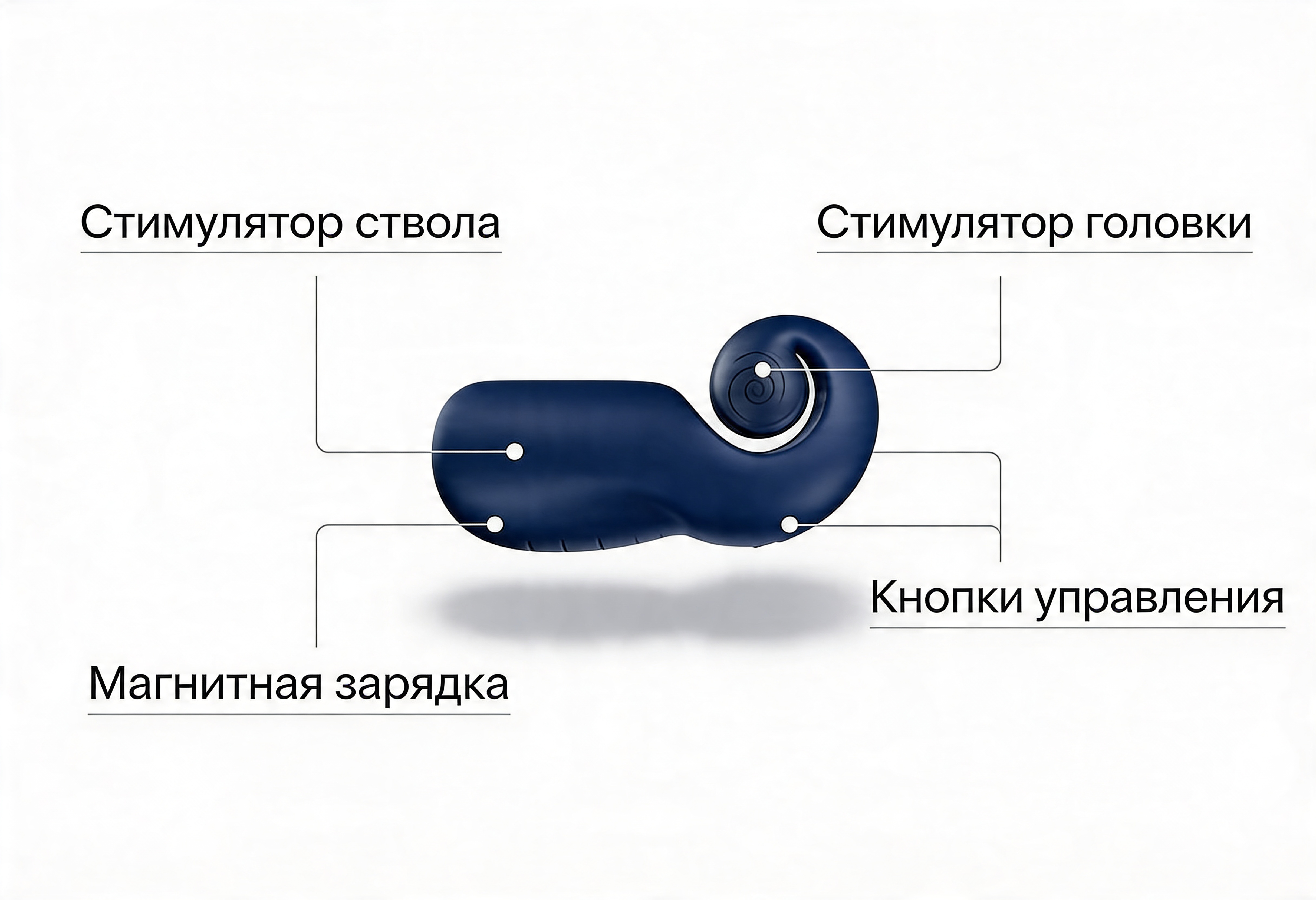 Открытая верхняя часть позволяет регулировать давление, усиливая ощущения. Мотор в основной части повышает интенсивность воздействия.