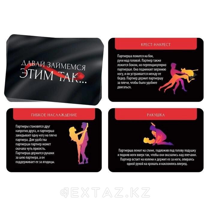 Ересектерге арналған ерекше ойындарды іздеп жүрсіз бе? "Мұны осылай жасайық" ФАНТАСЫ-махаббат пен құмарлық әлеміне нақты нұсқаулық. Интимдік өмірді әртараптандырғысы келетіндер үшін өте қолайлы! Бір жерде ең қызықты позалар! Ерлі-зайыптыларға немесе сіздің жан серігіңізге керемет сыйлық! Өзіңізге және серіктесіңізге жақын қарым-қатынастың рөлдік жанрын ашыңыз, оған бәрі қуанады.