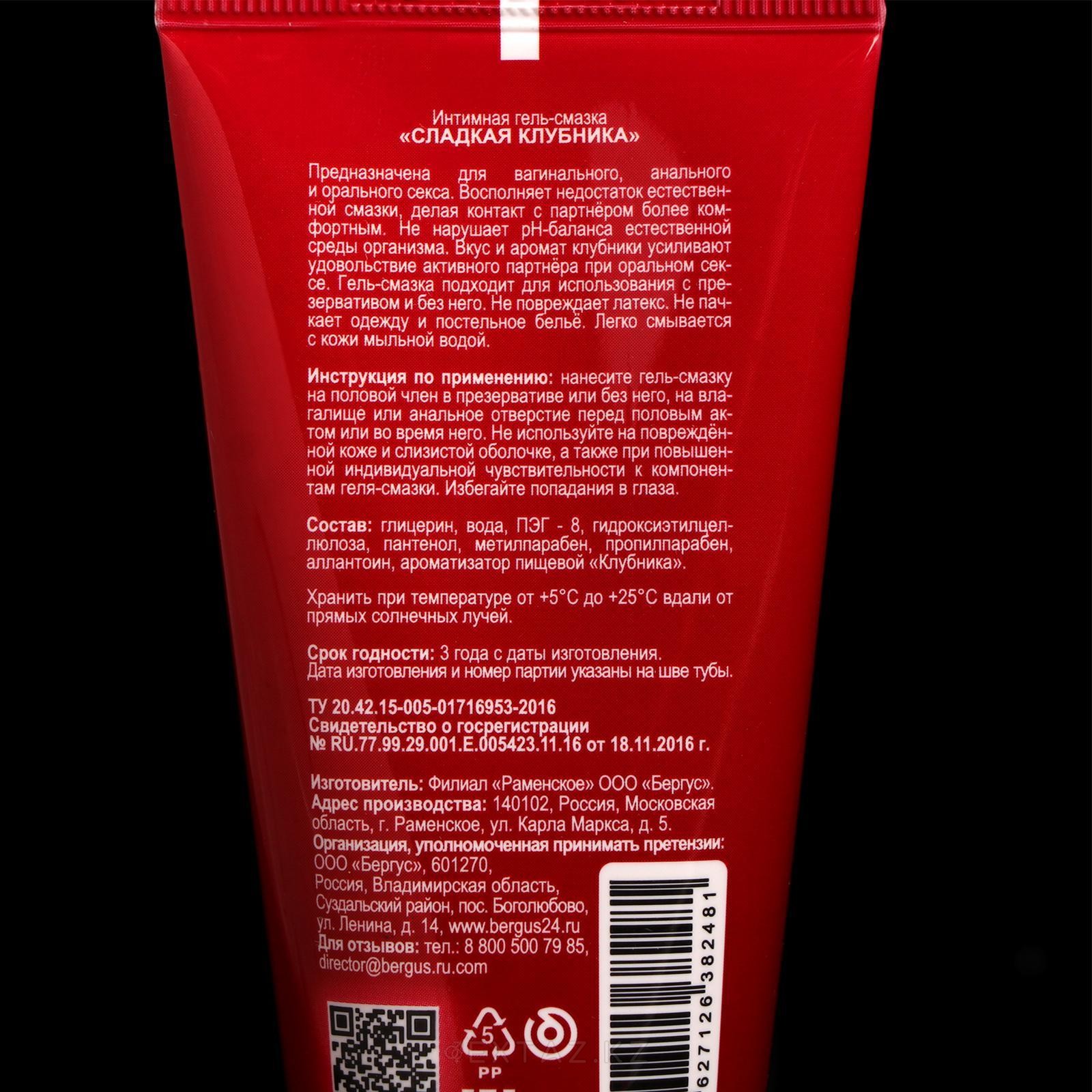 Лубрикант на водной основе, имеет клубничный аромат, обладает легкой текстурой и противовоспалительным действием. Гипоаллергенный состав отрицает побочные эффекты. Обеспечивает приятные гладкие ощущения. Не оставляет следов на белье и одежде. Легко смывается водой. Подходит для всех видов секса.