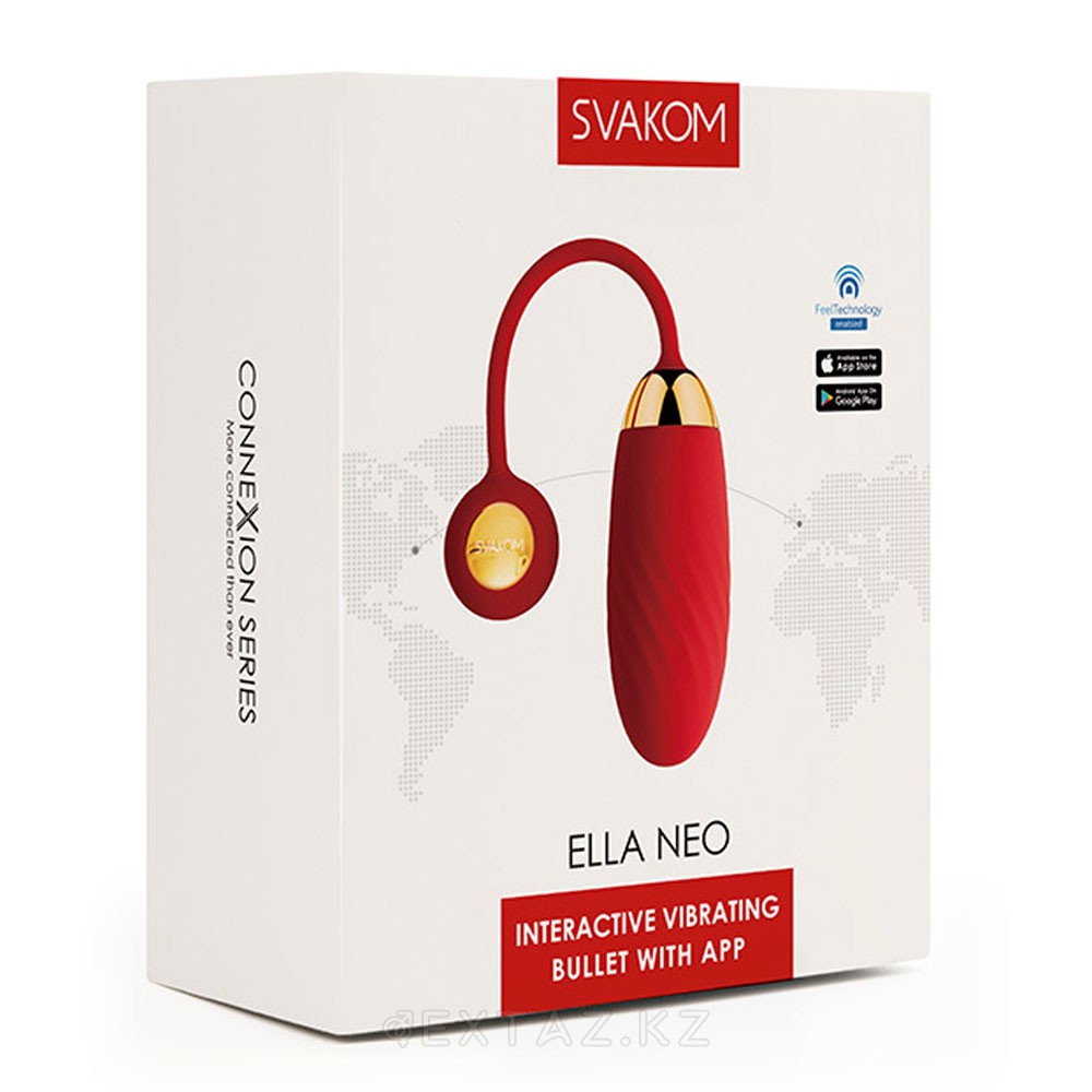 Ella Neo-тербелістердің такағына соғатын жарқын LED индикаторы бар текстуралы силиконнан жасалған интерактивті діріл жұмыртқасы. Құрылғы 11 ынталандыру режимімен жабдықталған, сонымен қатар кеңейтілген басқару үшін смартфонға Bluetooth арқылы қосылуды қолдайды.