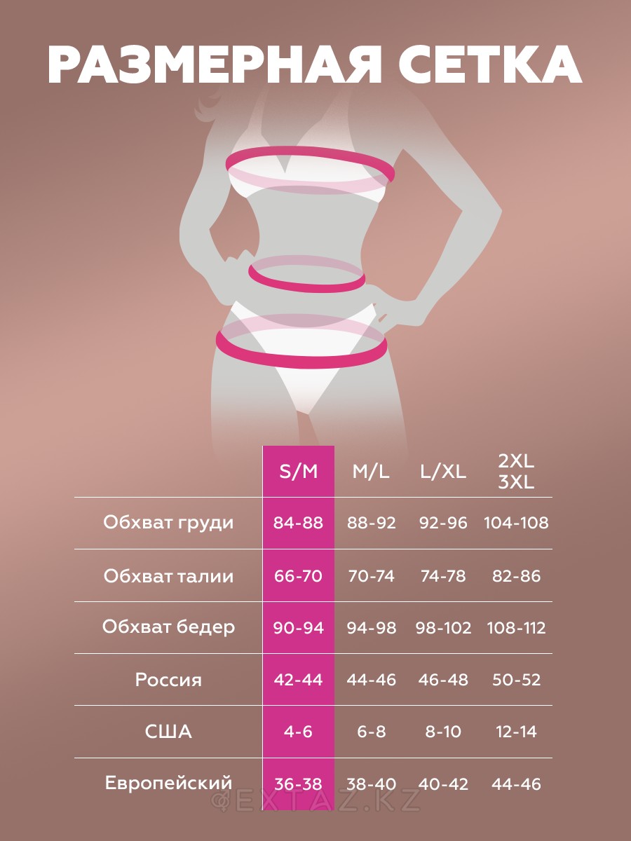 Көкірекше мен трусики үлкен шілтерлі өрнектерде, ал серпімді жолақтар кеудеге және төменгі денеге контурлап, керемет көрініс береді. Өзіңіздің қисықтарыңызды баса көрсетіңіз және ер адамды азғыруға тырысыңыз, өйткені сізге бір ғана көзқараспен оның ақыл-ойы мен денесі шектен шығады.