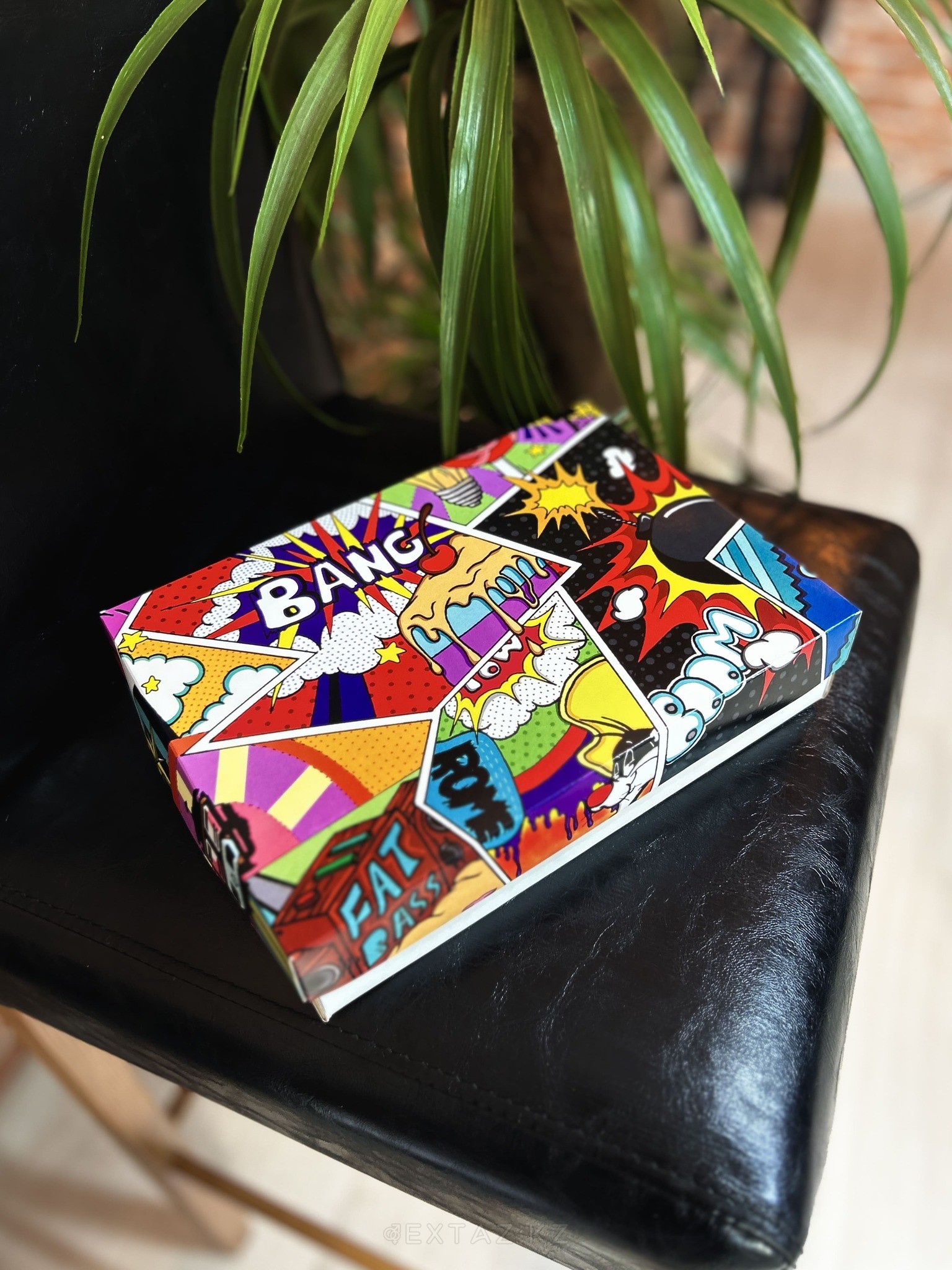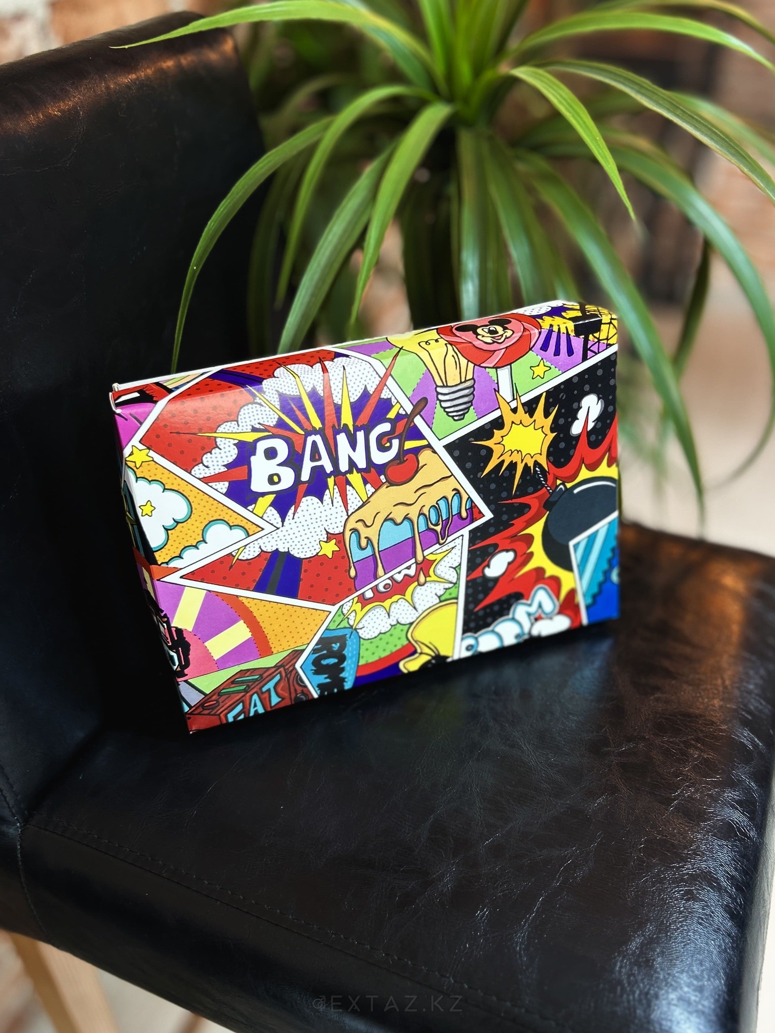 "Поп-Арт" қорабы ақ-керемет дизайны бар жарқын және креативті сыйлық орамасы.
