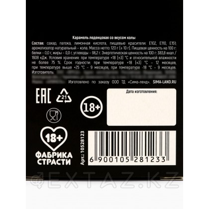 • ингредиенты: сахар, патока, лимонная кислота, натуральный ароматизатор «Кола», красители (E102, E110, E151)