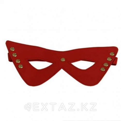 Незаменимый атрибут для БДСМ отношений. Маска выполнена в классическом красном цвете, по бокам украшена металлическими клёпками. Маска стандартной формы немного с заостренными углами. Без лишних деталей. Сделана из обработанной искусственной кожи, что делает маску мягкой. Благодаря крепкой резинке, маска хорошо крепится на голове и подойдет для продолжительного пользования.  В дополнение к маске можно подобрать кляп, наручники и плётку.