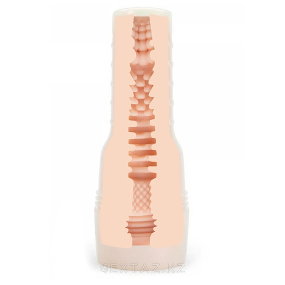 Masturbator Fleshlight Girls Madison Ivy Beyond выполнен по оригинальному анатомическому слепку актрисы Madison Ivy. Вход оформлен естественными рельефными деталями, а внутренняя структура повторяет текстуру Beyond — комбинированный канал, который начинается с узкой гладкой зоны и постепенно переходит в чередование расширений, сужений и рельефных участков. Такая структура создаёт переменную плотность контакта по всей рабочей длине и передаёт ощущение реалистичного рельефа.