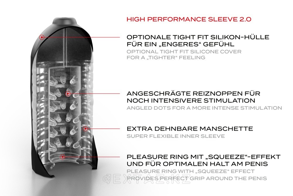 Құрылғы минутына 200 импульс жасауға қабілетті 60 Вт кіріктірілген қозғалтқышпен жабдықталған. Корпуста процесті басқаруға мүмкіндік беретін жарықдиодты дисплей мен спидометр бар. 8 автоматты бағдарлама және 6 жылдамдықты таңдау арқылы 1 қол режимі бар. Мастурбатор желіден жұмыс істейді, сонымен қатар оны автомобиль адаптерімен немесе USB қуаты арқылы пайдалануға болады.