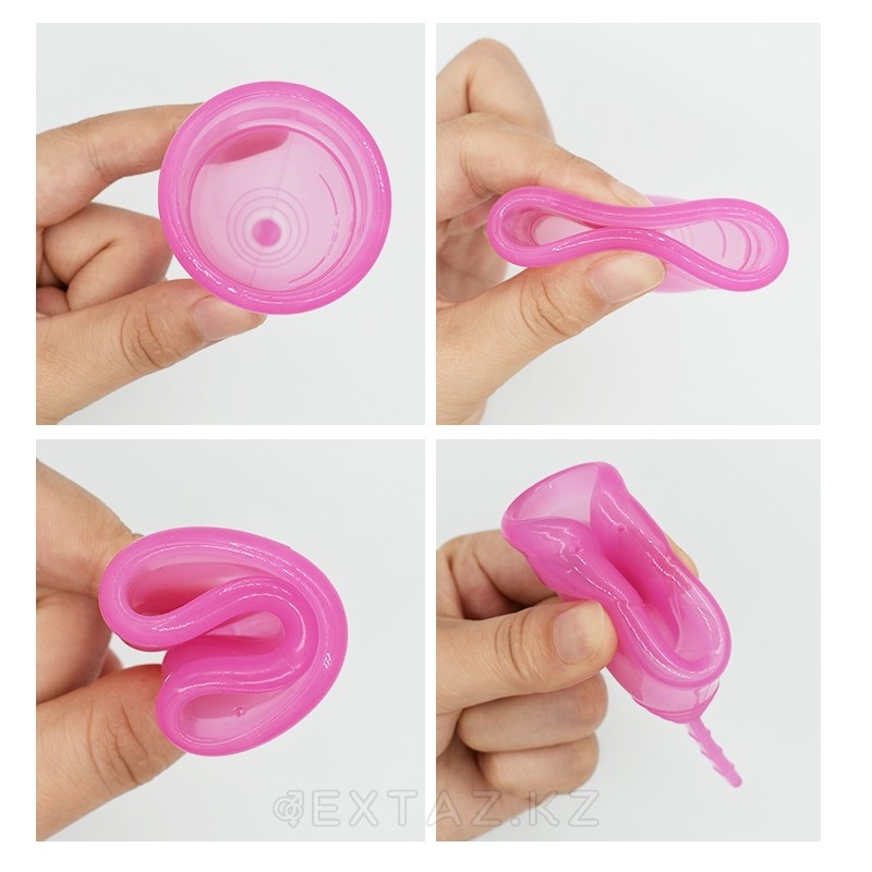 Сложите менструальную чашу на пополам буквой “U” и введите аккуратно во влагалище. Внутри чаша раскроется и готово к использованию. После накопления жидкости – достать и промыть в холодной воде. После, можно использовать чашу снова. Хранить в специальном мешочке, который входит в комплект.