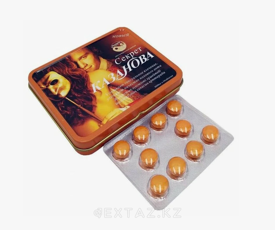 Адамзаттың күшті жартысының өкілдері үшін абсолютті олжа! Еркек қоздырғышы Казанова құпиясы-бұл жыныстық құмарлықты арттыруға және жыныстық өмір сапасын жақсартуға көмектесетін 10 таблеткадан тұратын бірегей өнім. Препарат пенис мөлшерін ұлғайтуға және қан ағымын барынша арттыру арқылы потенциалды нығайтуға көмектеседі. Тек 1 таблетканы жыныстық қатынастан 15-30 минут бұрын қабылдаңыз және оның әрекетінен ләззат алыңыз. Әсер 3 күнге дейін созылады.