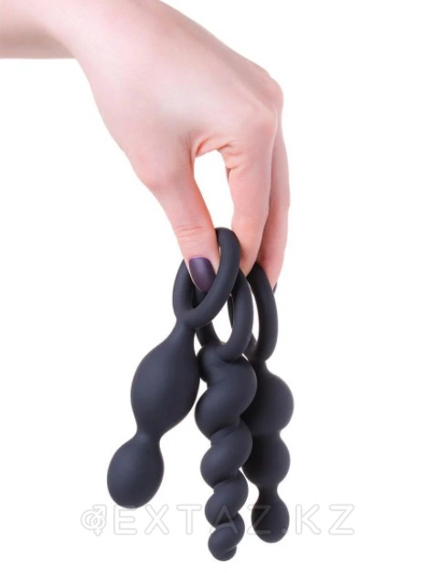 Набор анальных симуляторов Plug. Три различных варианта, представляющие собой два и три звена разного диаметра, соединённые одной осью и спиралевидная форма – идеальные игрушки для анальной стимуляции, а также в качестве прелюдии к анальному половому акту. Для комфортности введения и получения максимально приятных ощущений рекомендуем использовать смазку на водной основе.