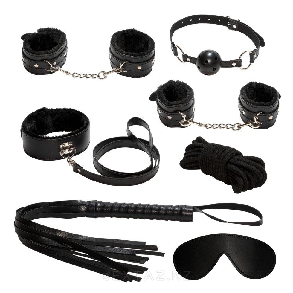 Жинаққа кіреді веревка, кляп, маска для лица, наручники с мехом, фиксаторы на ноги с мехом, ошейник с мехом и повод