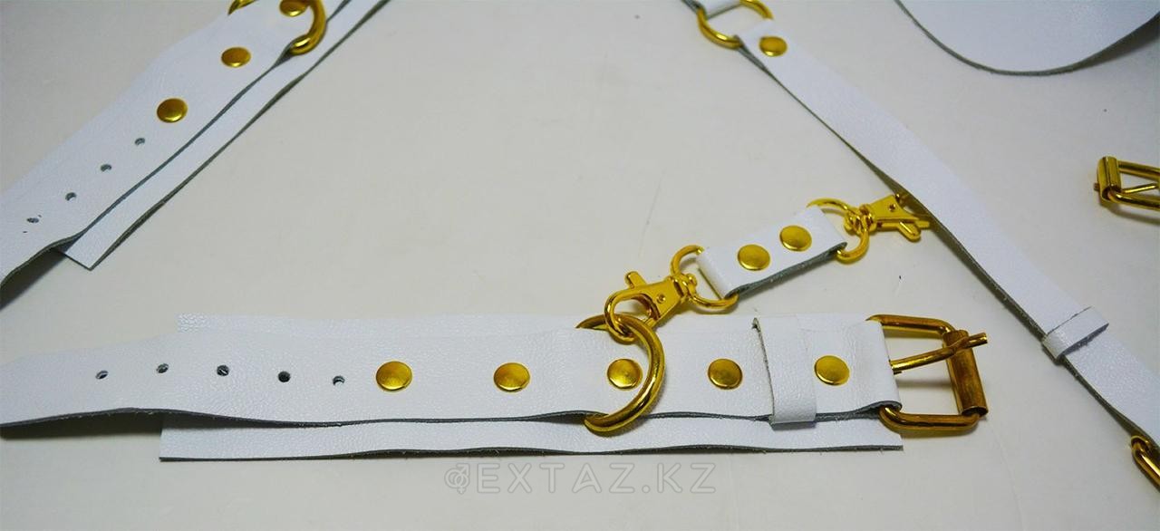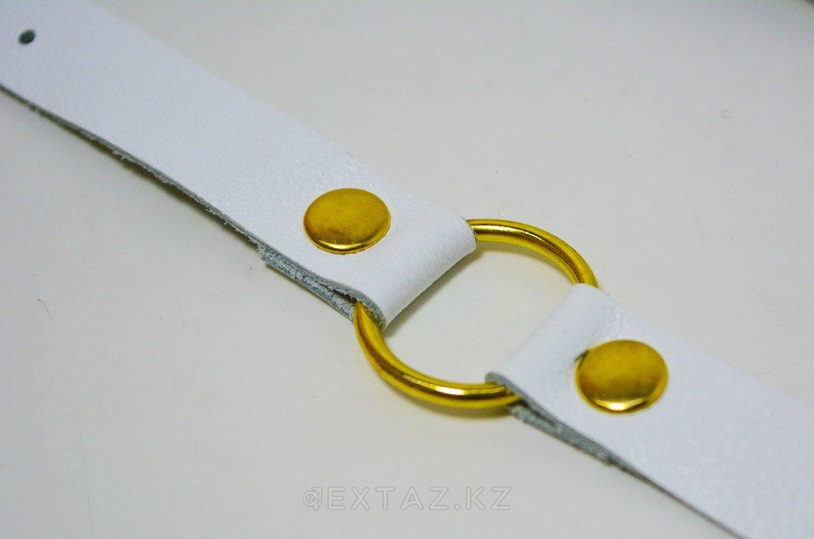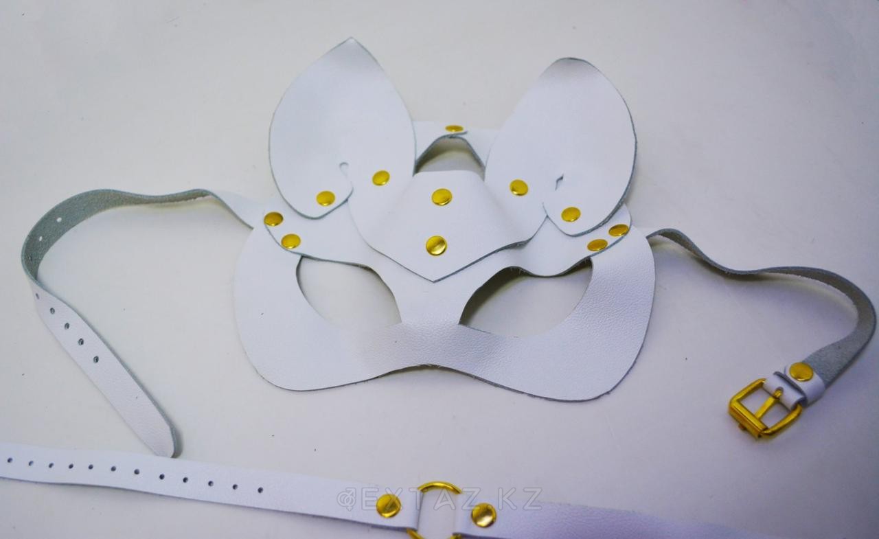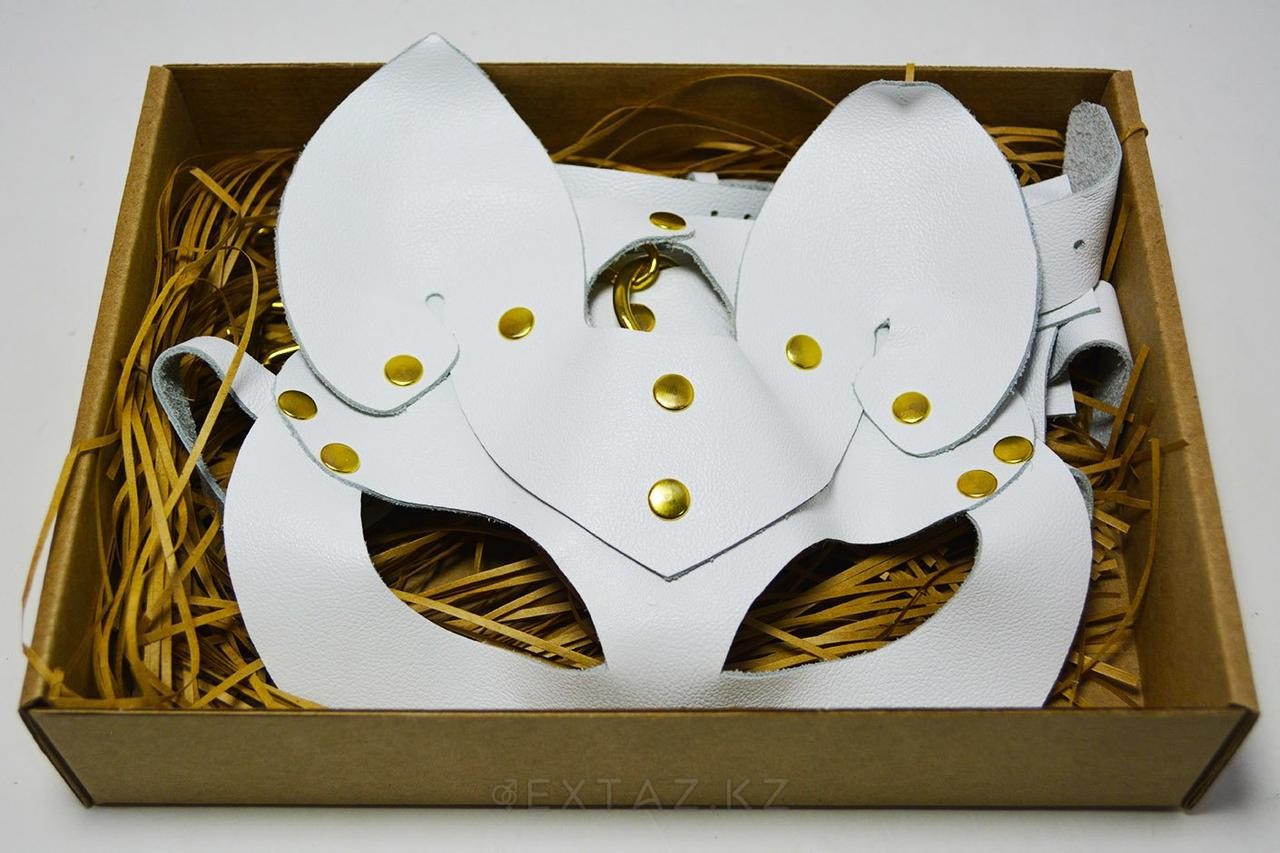 Сексапильный набор кожаных изделий состоит из маски, чокера и браслетов. Золотистая фурнитура гармонично сочетается с белым цветом. Такое сочетание делает аксессуары нестандартными и еще более соблазнительными. Маска с ушками перевоплощает в кошечку, но только ни в белую и пушистую. Раскройте свой дикий нрав и покажите острые коготки. О сексе с такой дикаркой мечтает каждый, но сначала нужно постараться обуздать страстную тигрицу.