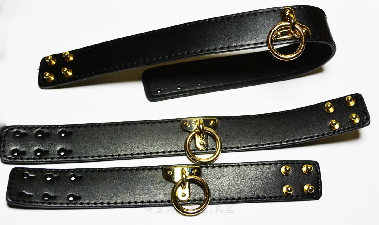 Жинаққа кіреді маска кошечки, зажимы на соски, наручники, оковы на ноги, ошейник и цепь-поводок кляп