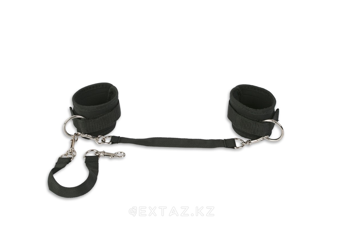 Фиксатороы-манжеты в наборе с поводком - прекрасный повод начать что-то новое и добавить игру в интимную жизнь! А для опытных любителей фетиша и ролевых игр станет незаменимым девайсом! Мягкие манжеты фиксируются и регулируются с помощью липучки, поводок с ошейником удобно и легко пристегиваются. Элементы комплекта выполнены из приятного на ощупь нейлона. Манжеты крепятся к ошейнику ремешками с карабинами.