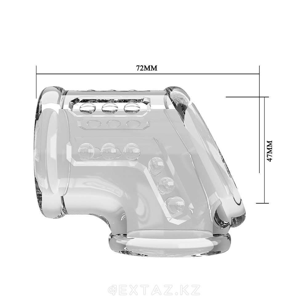 - Комфорт и надёжная фиксация — отверстие для мошонки позволяет насадке удобно держаться и не смещаться во время близости.