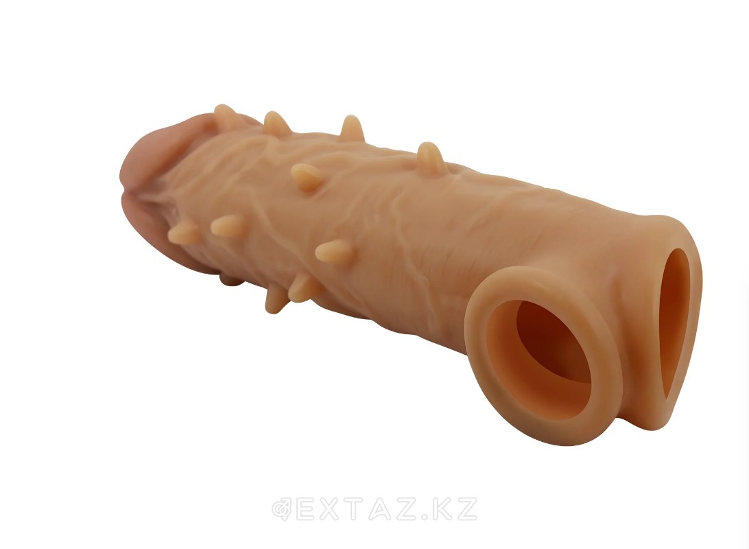 Изделие выполнено из мягкого силикона с эффектом «кожи», который дарит естественные тактильные ощущения и визуальный реализм. Полая конструкция легко надевается на эрегированный пенис, а кольцо под мошонку обеспечивает стабильную фиксацию без смещения. Утолщённые стенки и рельефная поверхность усиливают стимуляцию партнёра, делая контакт более насыщенным. Для комфортного скольжения рекомендуется использовать лубрикант на водной основе.