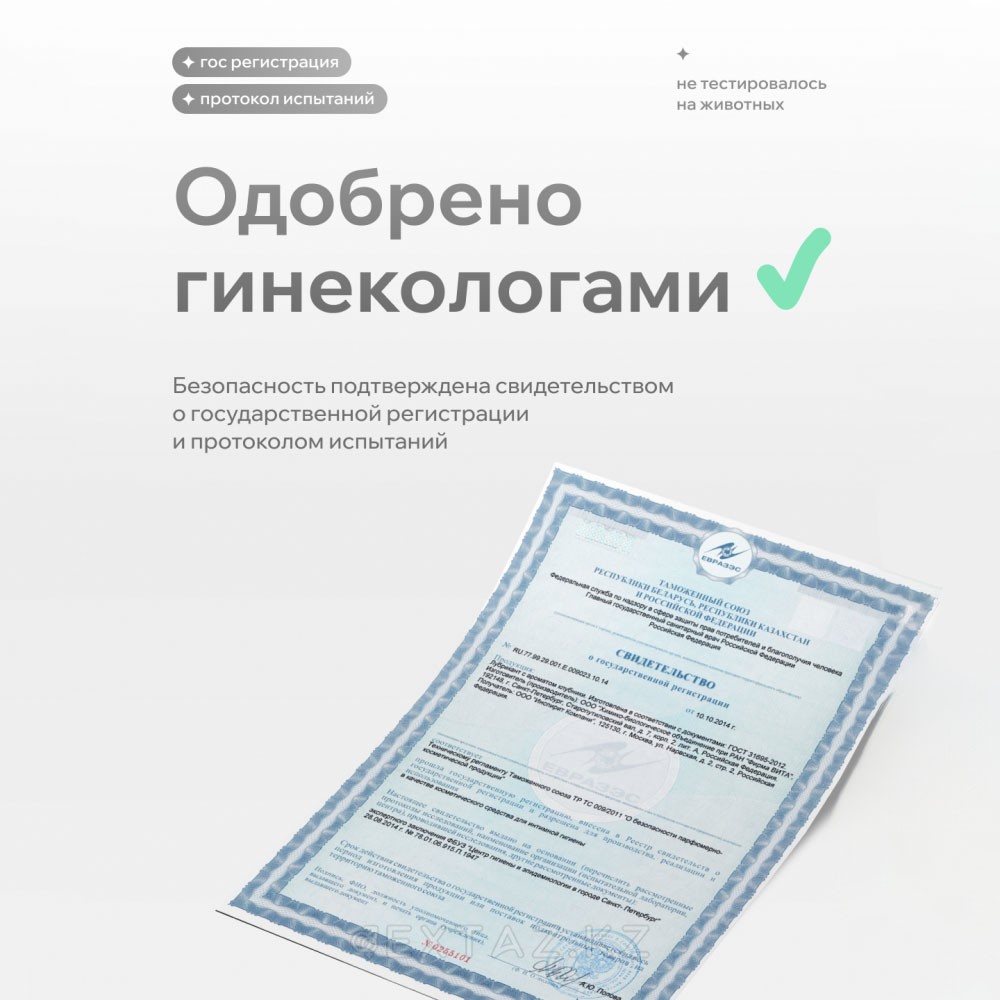 Теңдестірілген рН деңгейі табиғи жайлылықты сақтайды. Композицияда өсімдік тектес компоненттер қолданылады. Розмарин суы мен жалбыз суы балғындық сезімін тудырады, ал сүт қышқылы қоршаған ортаның тепе-теңдігін сақтайды.