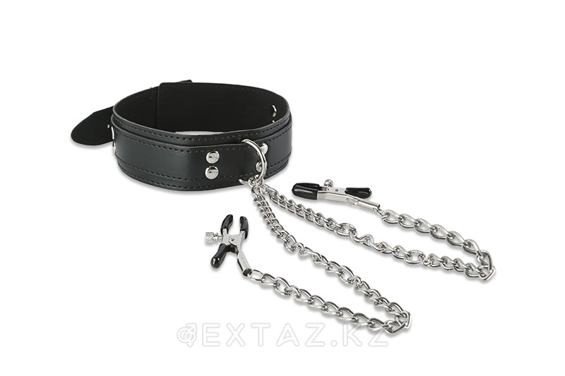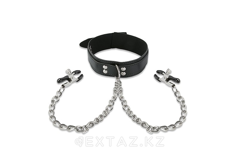 Сабмиссивтің рөлін сынап қана қоймай, сонымен қатар өз сезімдерін күшейтуді қалайтындар үшін жарқын атрибут. Емізік қысқыштары бар жаға – сіздің Доминантыңыз өзінің артықшылығынан ләззат алса, сіз ұмытылмас ләззат ала аласыз! Орташа ені бар жаға былғарыдан жасалған. Алдыңғы жағында атрибут сақинамен жабдықталған, оған тізбектерге қысқыштар бекітілген. Мұндай жиынтық сіздің сезімдеріңізді оятып қана қоймай, ұмытылмас бейнені де жасайды! Көріністі мінсіз ету үшін біз жағаға қосымша денені таңдауды ұсынамыз. Сабаның мінсіз бейнесі!