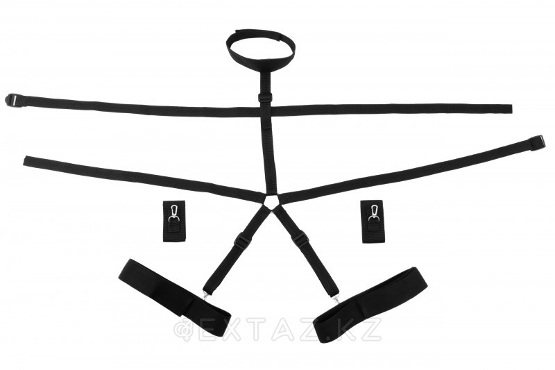 Прочные материалы, из которого сделаны ремни, надежно будут удерживать вашего партнера в своих объятиях. При длительном пользовании не создадут дискомфорта и не оставят неприятных следов на коже. Длина регулируется по необходимости. Подойдет на любые параметры и рост. Манжеты и набедренные фиксаторы на липучках.