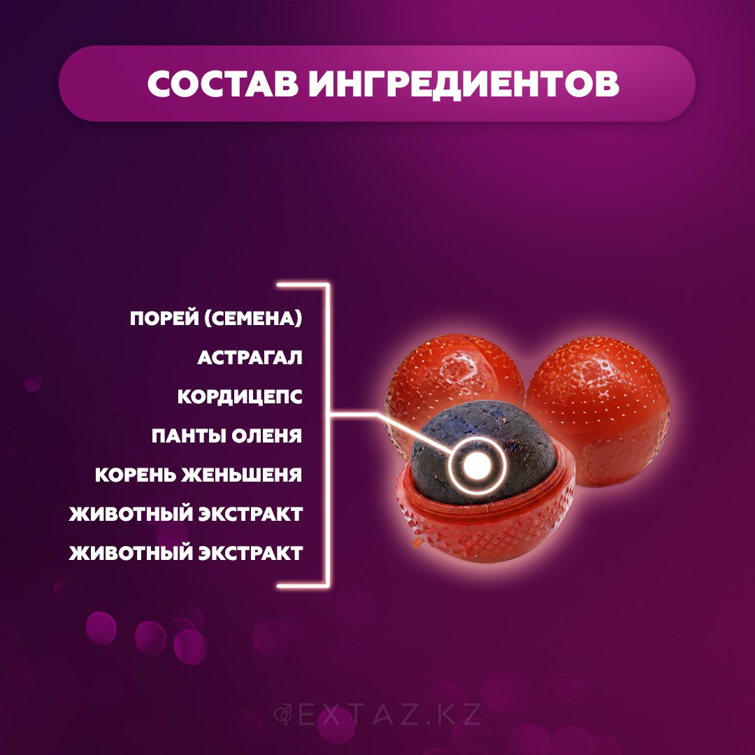 Қасиеттері стимулирует тестостерон, поддерживает эрекцию, укрепляет иммунитет