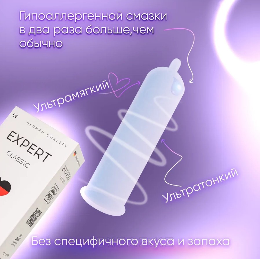 EXPERT CLASSIC презервативтері-Германияда amor зауытында өндірілген сенімді жеке қорғаныс құралы. Сапалы латекс пен гипоаллергенді силикон майын қолдану арқылы олар пайдалану кезінде жайлылық пен қауіпсіздікті қамтамасыз етеді.