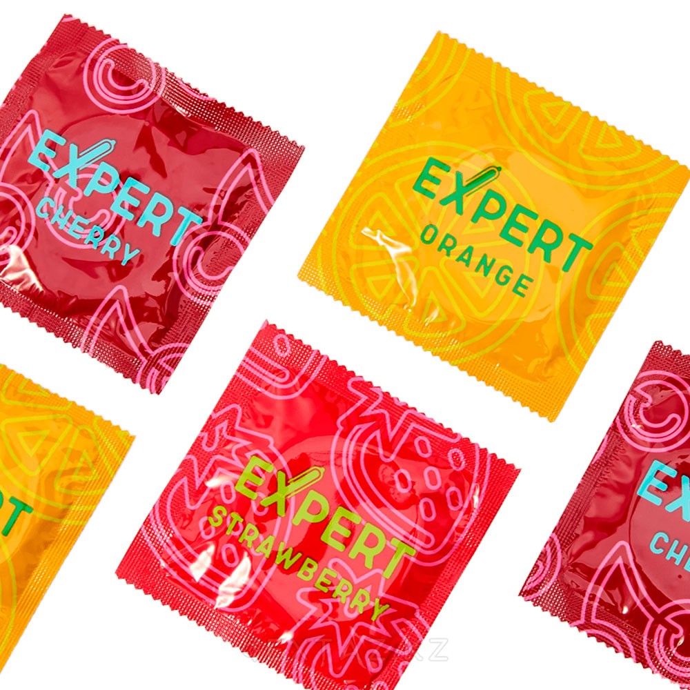 EXPERT Fruit Mix тегіс презервативтері жақындықты шие, құлпынай және апельсиннің жарқын хош иістерімен толтырады. Өнімдер табиғи латекстен жасалған, иіссіз және электронды сапаны тексеруден өтті. Жеміс ноталарымен үйлескен материалдың жоғары нәзіктігі табиғи сезім мен ерекше көңіл-күйді қамтамасыз етеді.
