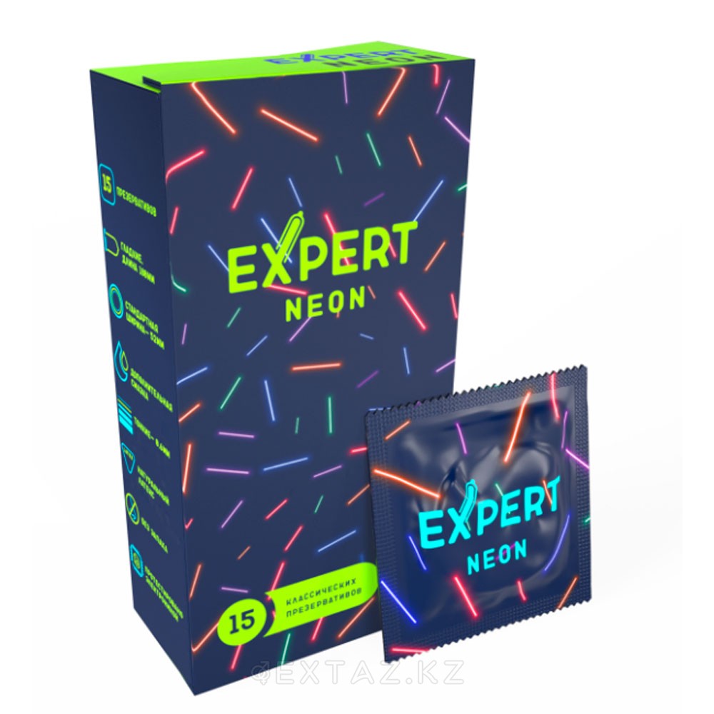 Expert neon презервативтері, жарқыраған, 15 дана