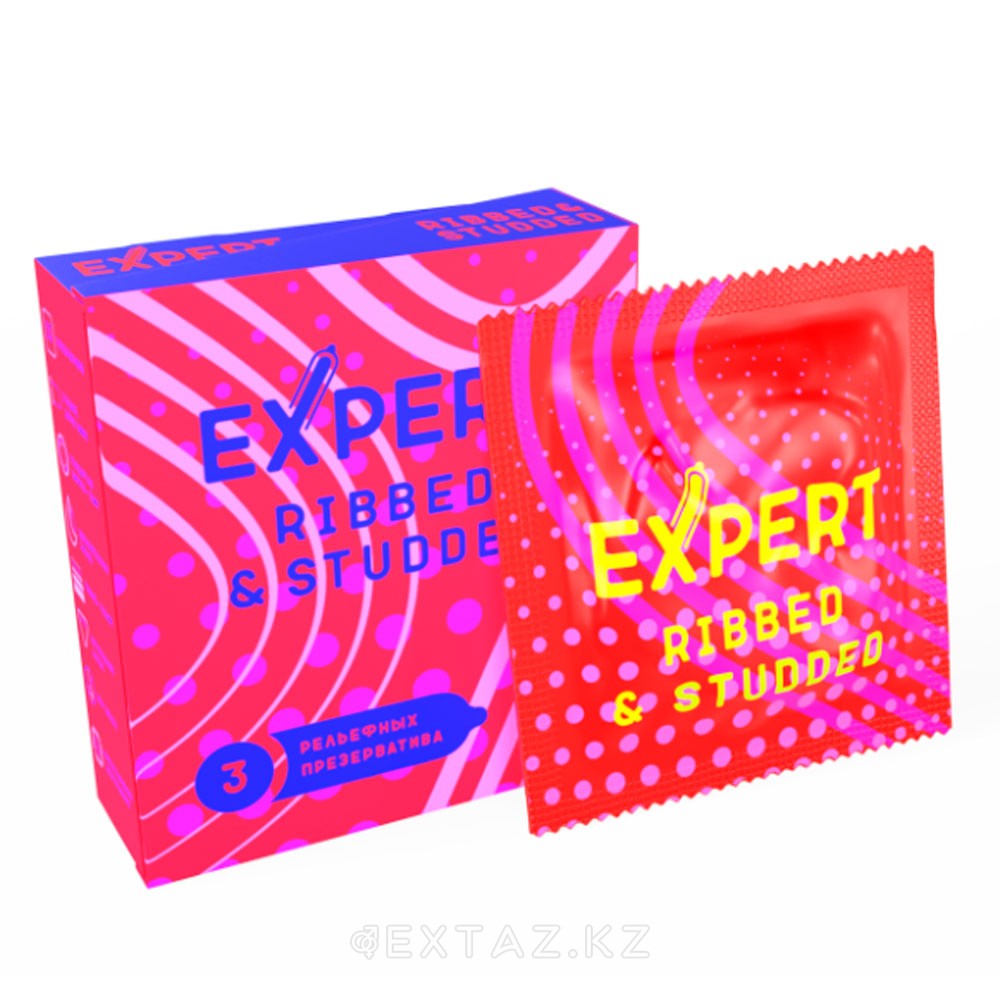 EXPERT Ribbed&Studded презервативтері, қырлы-нүктелі, 3 дана