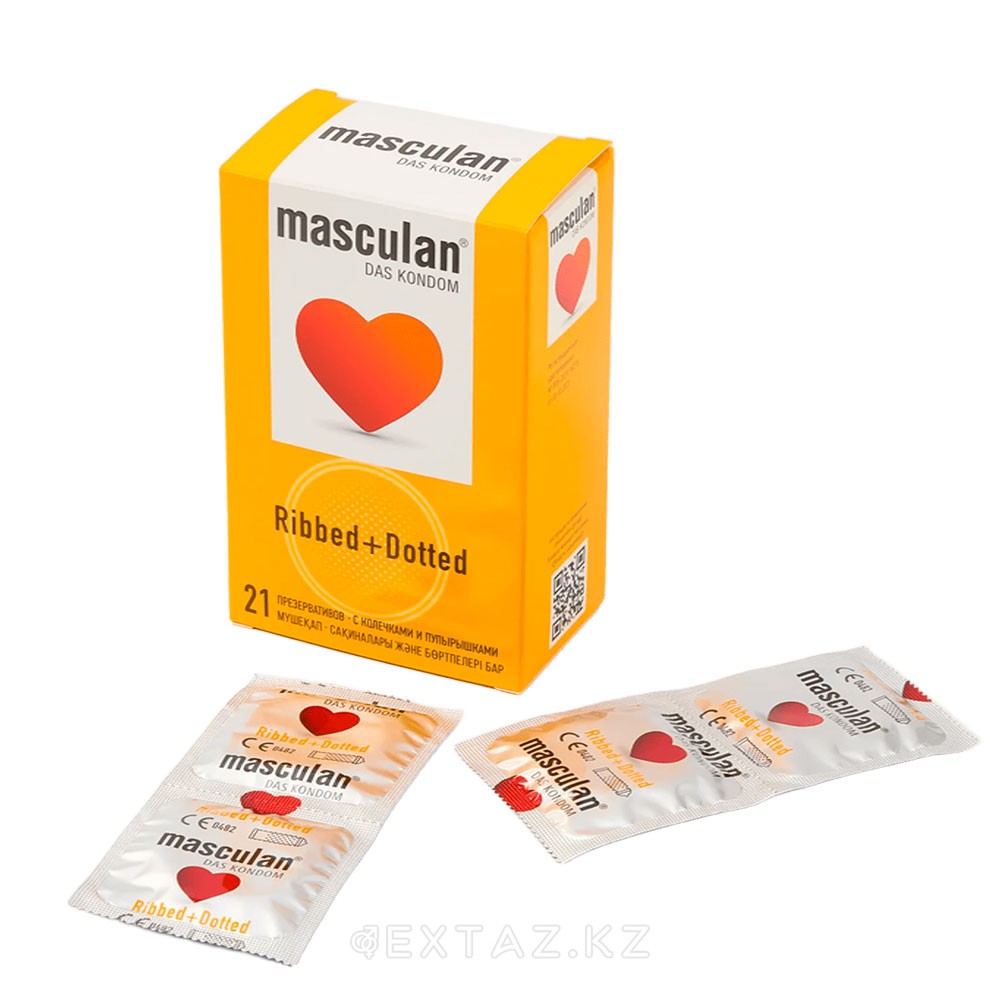 Masculan Ribbed + Dotted презервативтері, сақиналары мен безеулері бар, №21