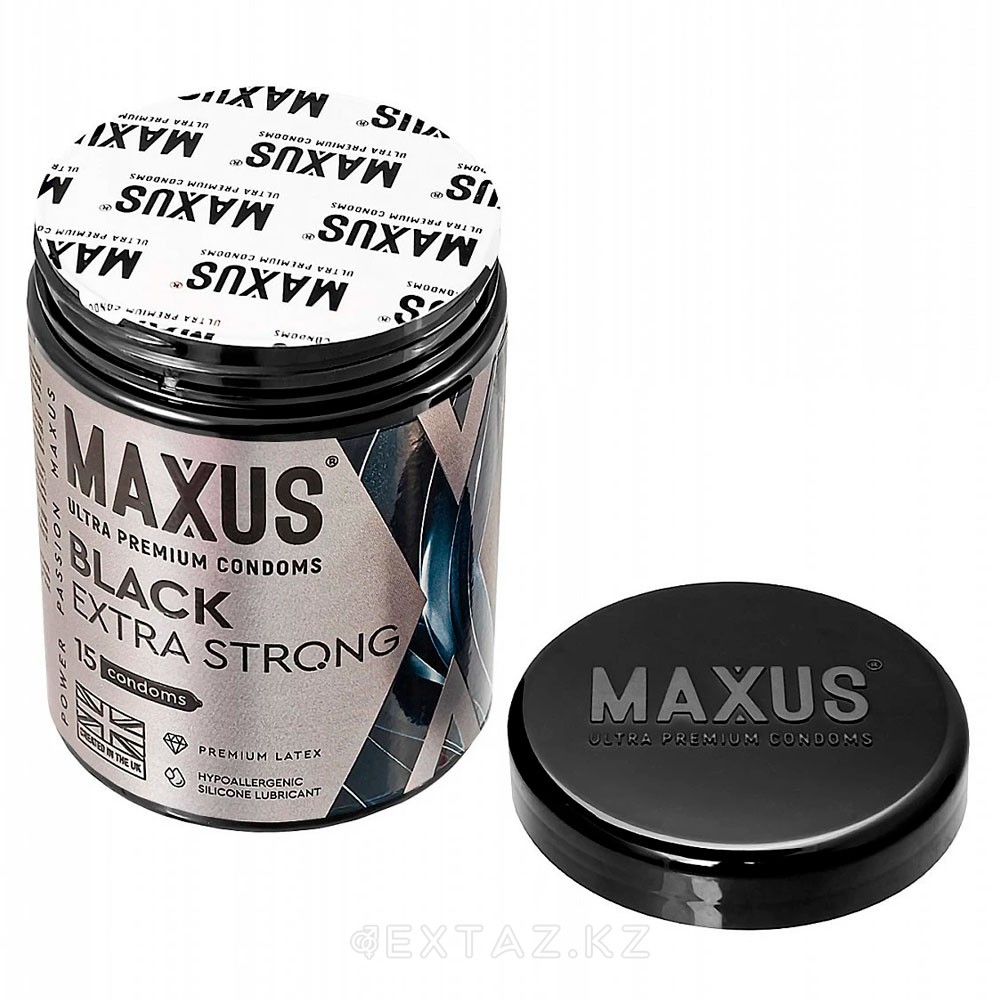 MAXUS Extra Strong презервативтері, қалыңдатылған, қара, 15 дана