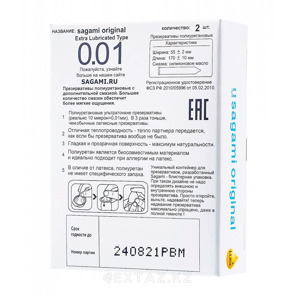 Презервативы Sagami Original 001 EXTRA LUB, 2 шт