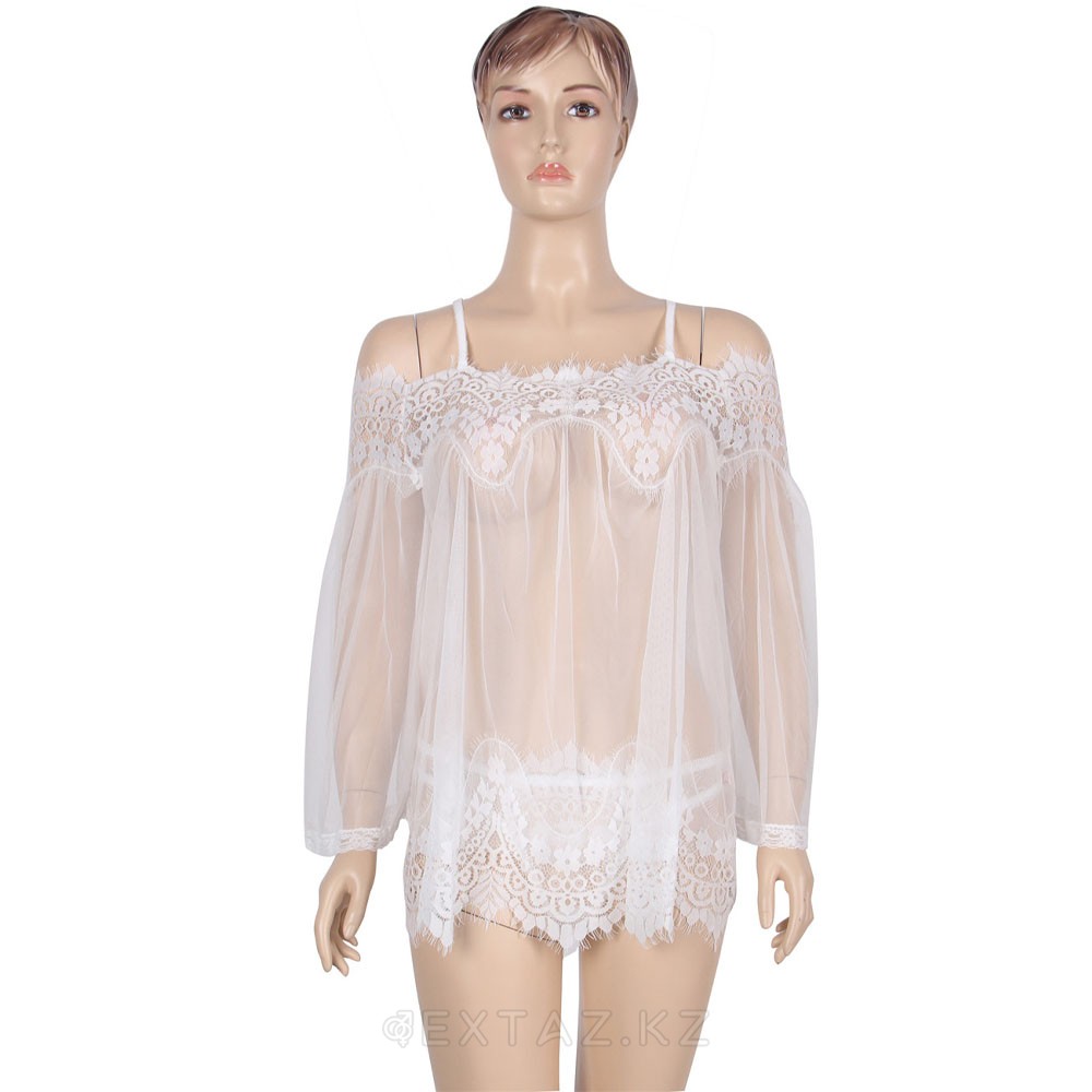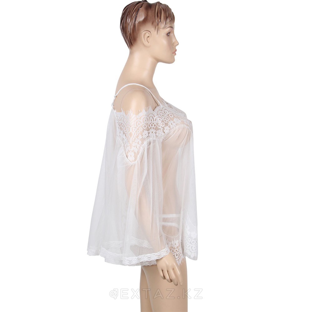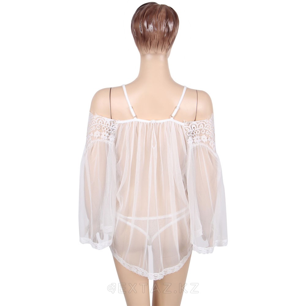 Өнім ақ түсте жанасуға жағымды материалдан жасалған. Мөлдір, аққан гүлді мата сіздің денеңізді керемет сексуалдылыққа орайды, бұл сіздің ер адамыңызды ұрып-соғуға мәжбүр етеді. Жиынтықта сіздің аузыңызды ашатын бөксеңізге қарайтын жіптер бар.