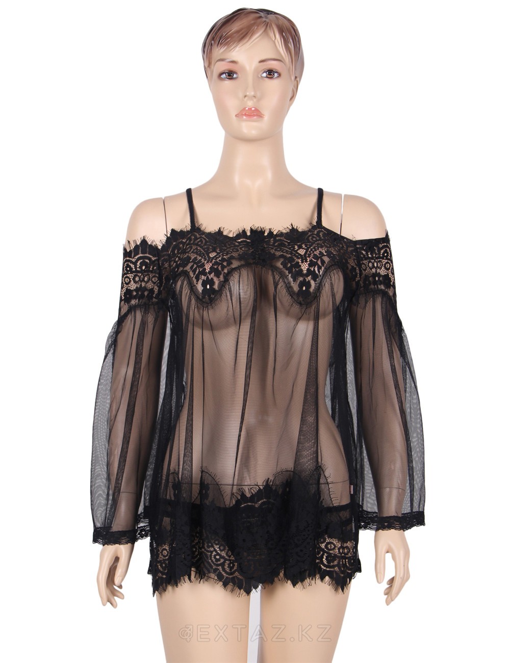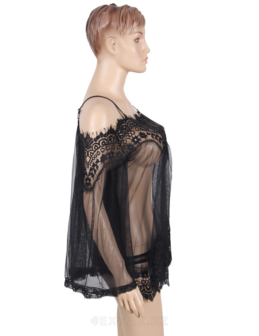 Прозрачная туника с цветочным принтом черная (размер XS-S)