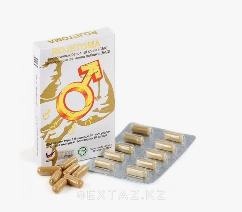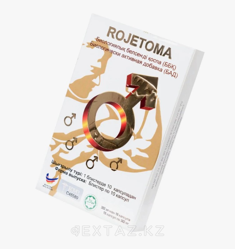"Rojetoma" - потенциалды арттырудың әмбебап құралы және ерлер денсаулығының табиғи көзі. Препараттың басты ерекшелігі – бірегей ингредиент – Перу мака, Анд тауларында теңіз деңгейінен 3300-4500 метр биіктікте өсетін сирек өсімдік. Клиникалық зерттеулер өсімдіктің тиімділігі кез-келген басқа құралдар мен дәрі-дәрмектерден жоғары екенін дәлелдеді. Әсер бірінші капсуланы қабылдағаннан кейін пайда болады. Перулік Мака-ер адамның құпия қаруы!