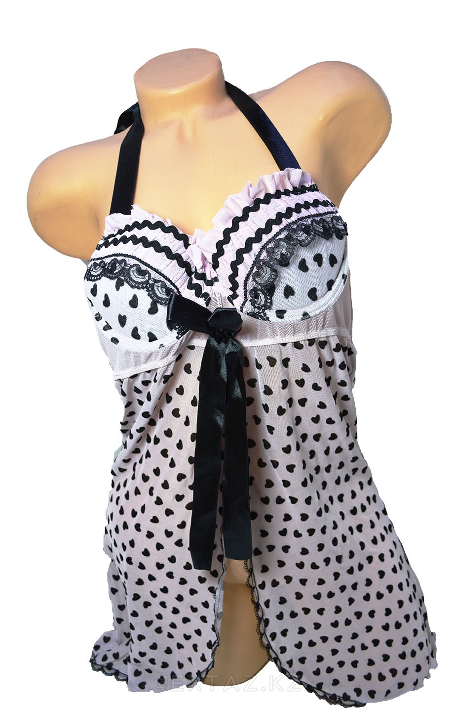 Нежный и утонченный розовый пеньюар в горошек намекает на невинную страсть и слабость, но это видимая слабость. Внутри бушует огонь, довершая ваш образ. Пеньюар выполнен из мягкого материала, который приятно прилегает к телу не доставляя дискомфорта, а даря только ощущение нежной вуали. Он драпирован оборками и бантиками,  а лямки регулируются сзади.  Завершить образ вам помогут элегантные аксессуары и костюмы для игр, которые могут поддержать возбуждающие средства. и порочные игры для вас.